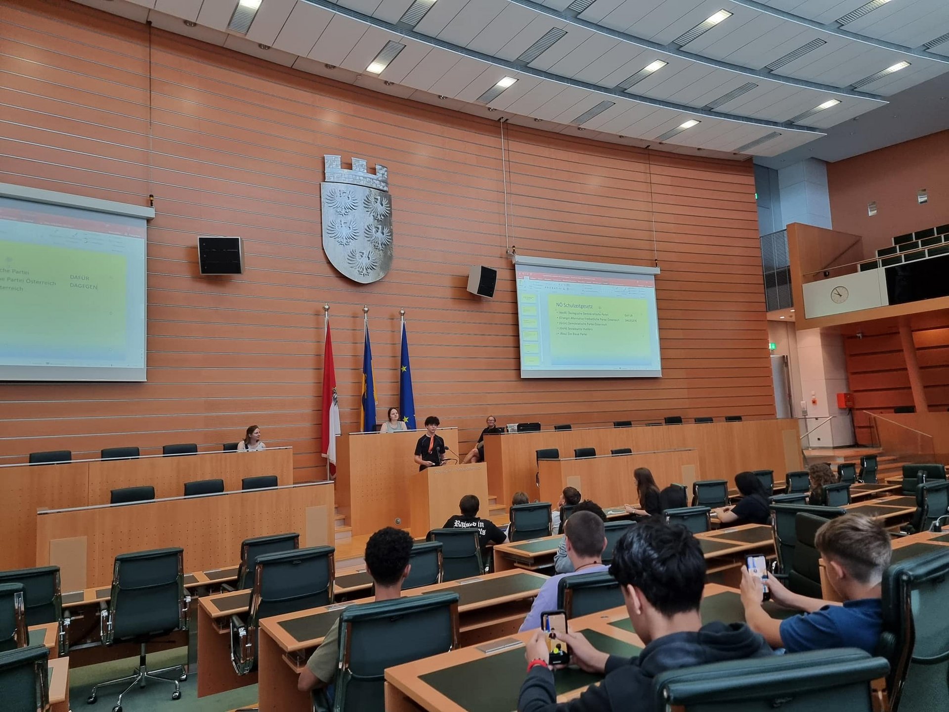 Beim Besuch der Landeshauptstadt wurde dieses Jahr der Fokus auf den Landtag gelegt. Die Schülerinnen und Schüler der 4. Klassen durften im Kinderlandtag eigene Gesetze einbringen, darüber debattieren und anschließen eine Abstimmung simulieren.